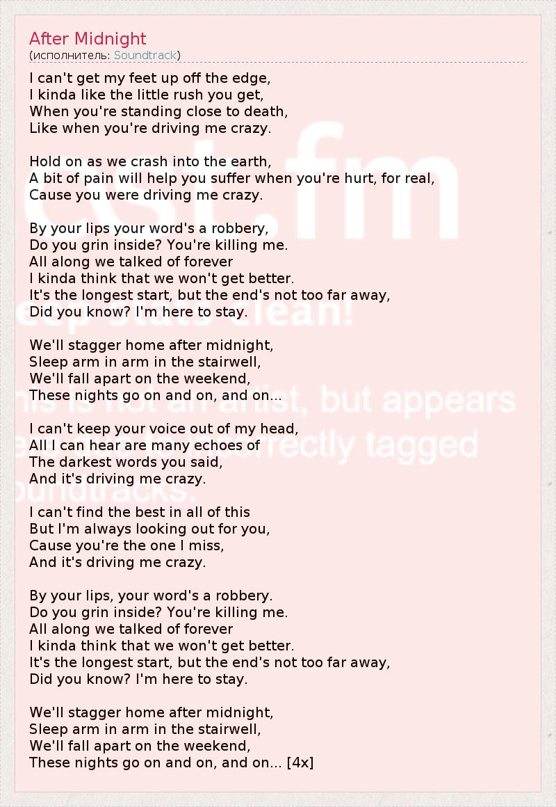 А как ты думаешь, о чем песня "After Midnight" ?