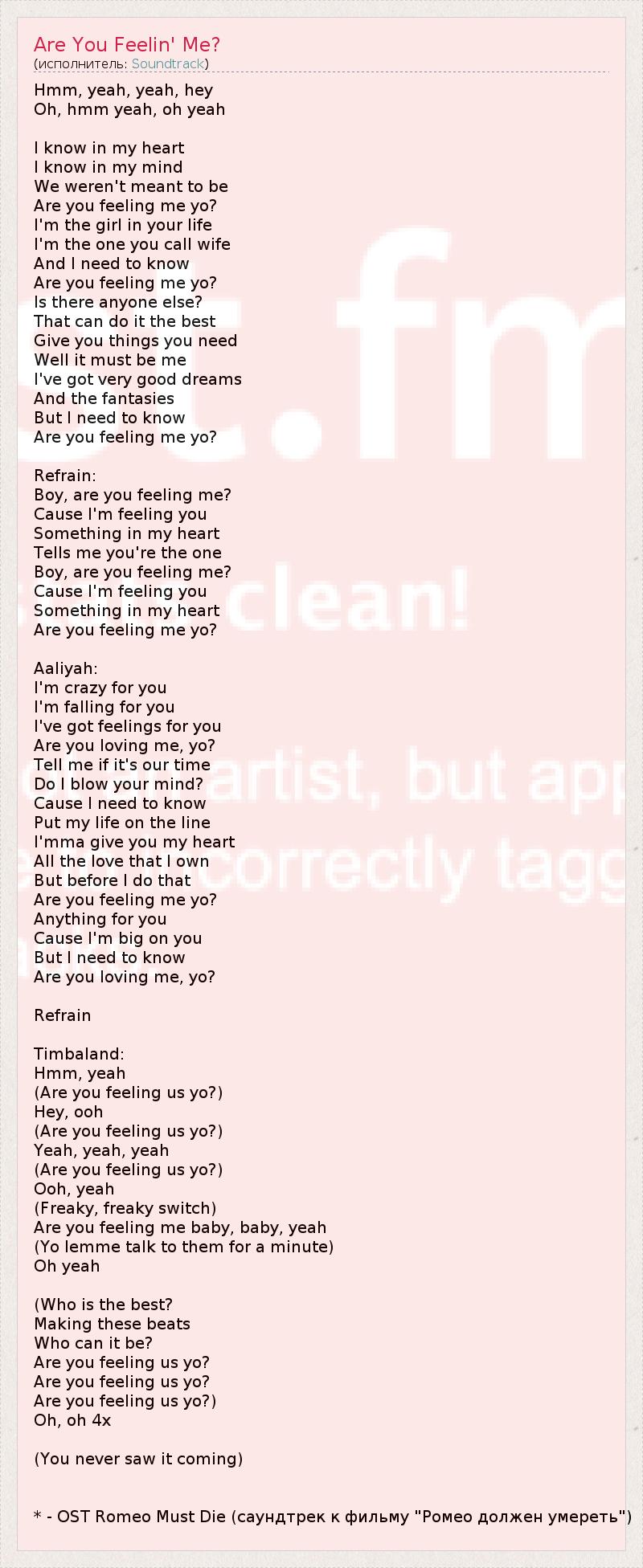 А как ты думаешь, о чем песня "Are You Feelin' Me?" ?