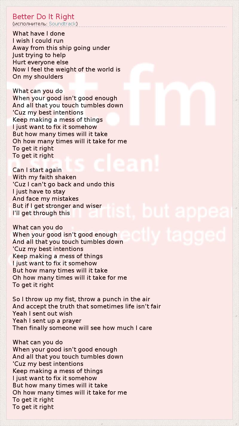 А как ты думаешь, о чем песня "Better Do It Right" ?