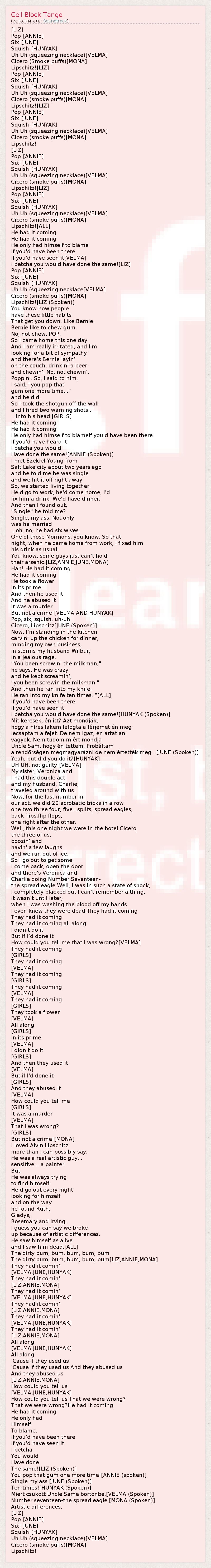 А как ты думаешь, о чем песня "Cell Block Tango" ?
