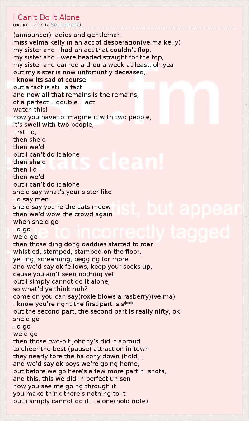 А как ты думаешь, о чем песня "I Can't Do It Alone" ?