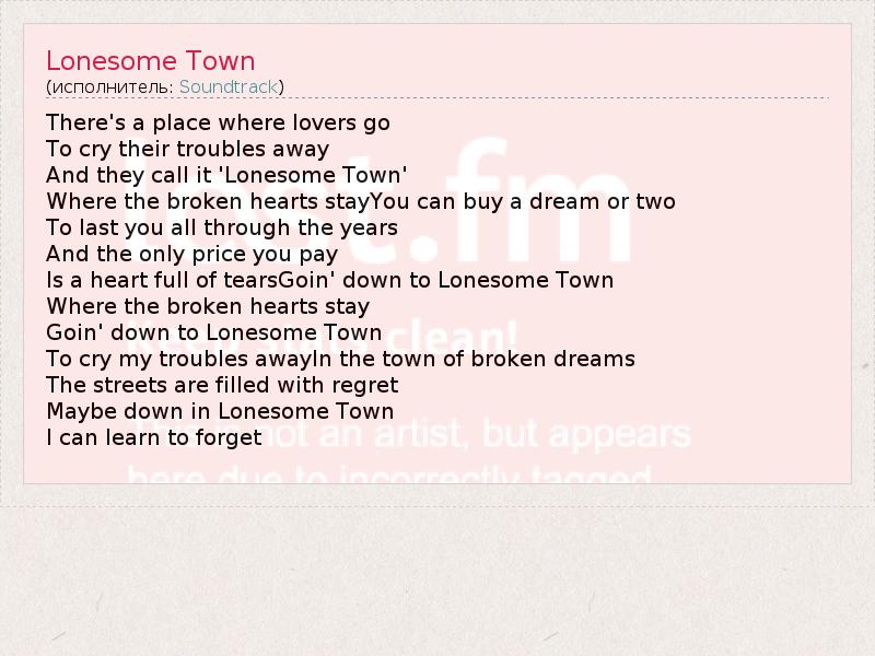 А как ты думаешь, о чем песня "Lonesome Town" ?