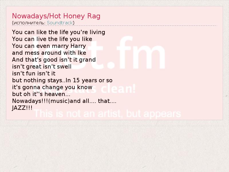 ГлавнаяИсполнителиSoundtrackNowadays/Hot Honey Rag