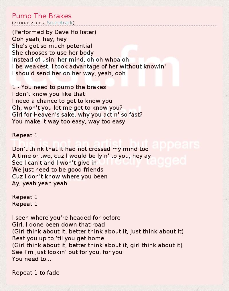 А как ты думаешь, о чем песня "Pump The Brakes" ?