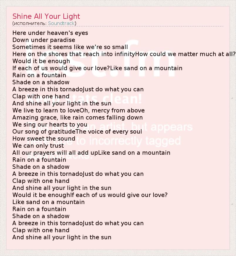 А как ты думаешь, о чем песня "Shine All Your Light" ?