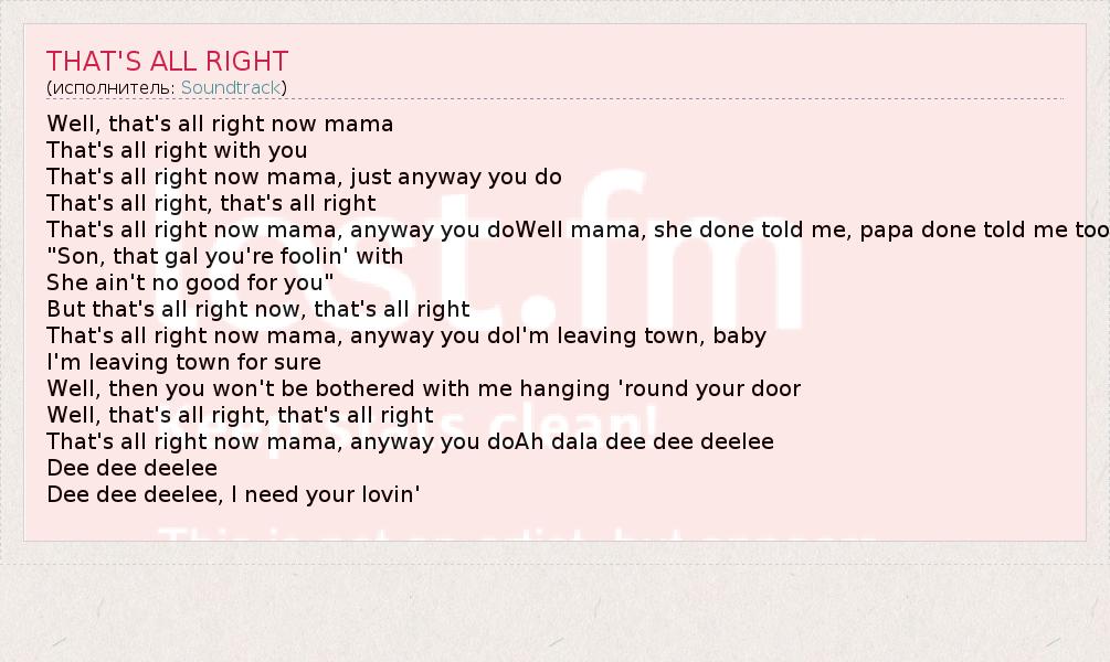 That's all right now mama, anyway you doAh dala dee dee deelee