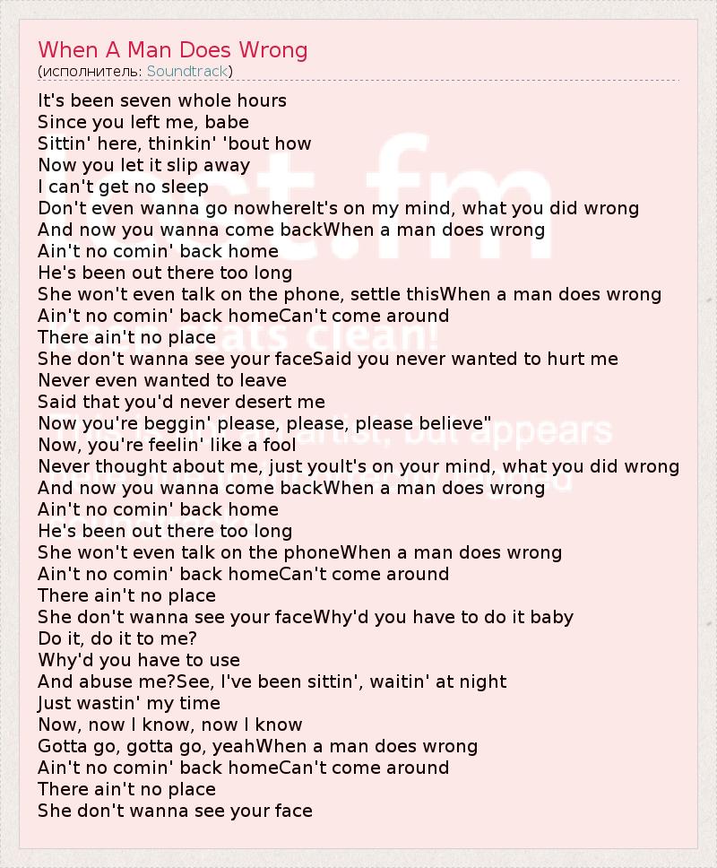 А как ты думаешь, о чем песня "When A Man Does Wrong" ?
