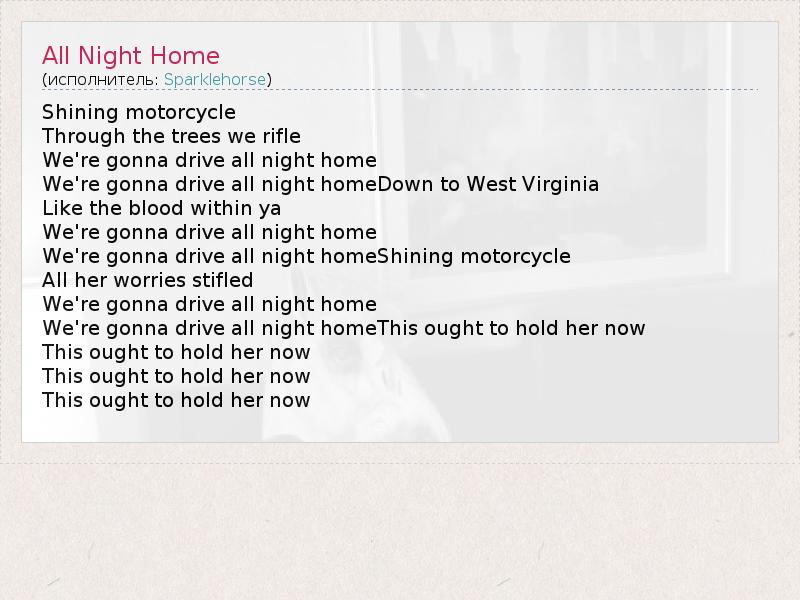 А как ты думаешь, о чем песня "All Night Home" ?
