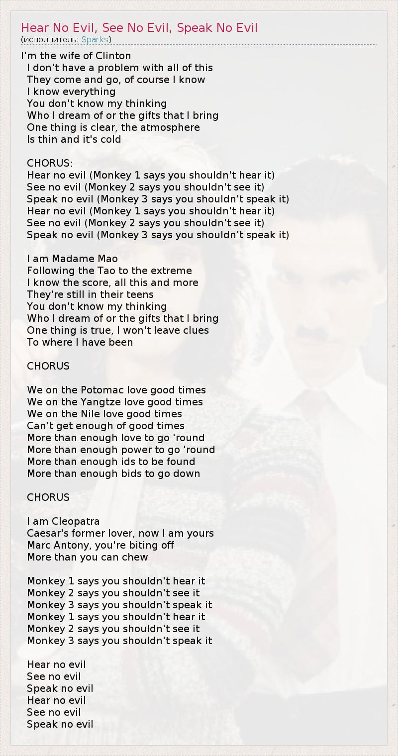 ГлавнаяИсполнителиSparksHear No Evil, See No Evil, Speak No Evil