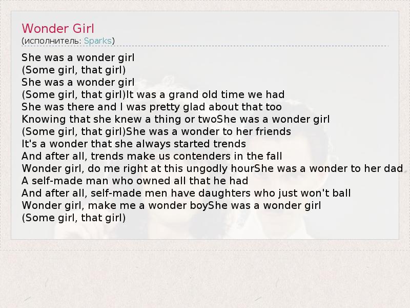 А как ты думаешь, о чем песня "Wonder Girl" ?