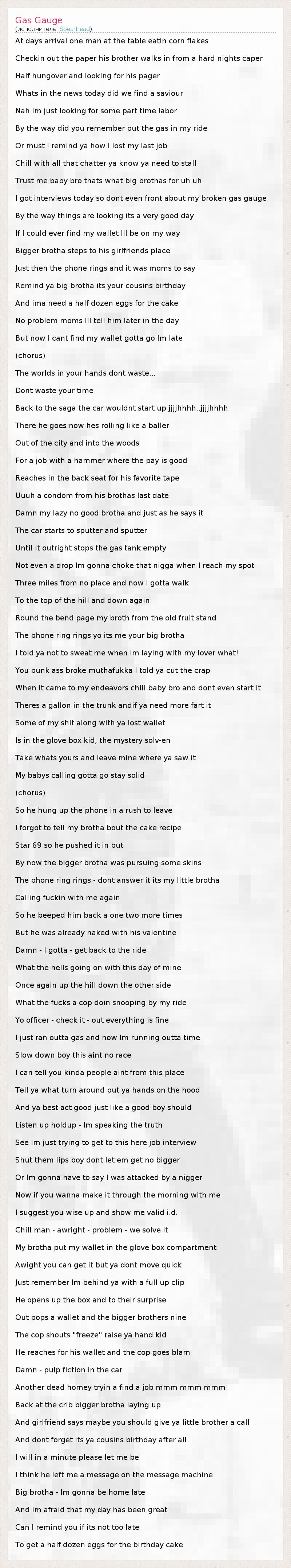 А как ты думаешь, о чем песня "Gas Gauge" ?
