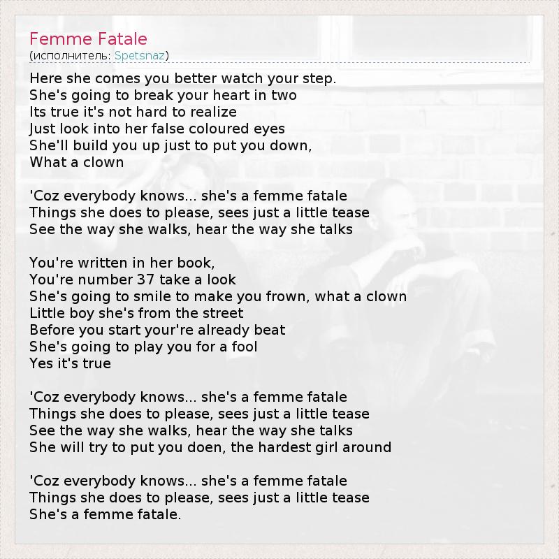 А как ты думаешь, о чем песня "Femme Fatale" ?
