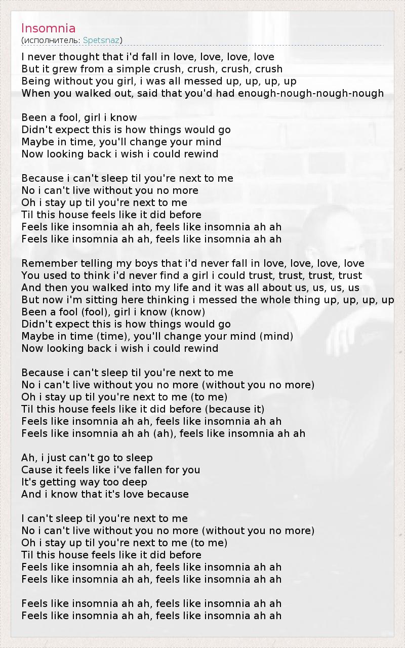 Я не могу спать, пока тебя нет рядом