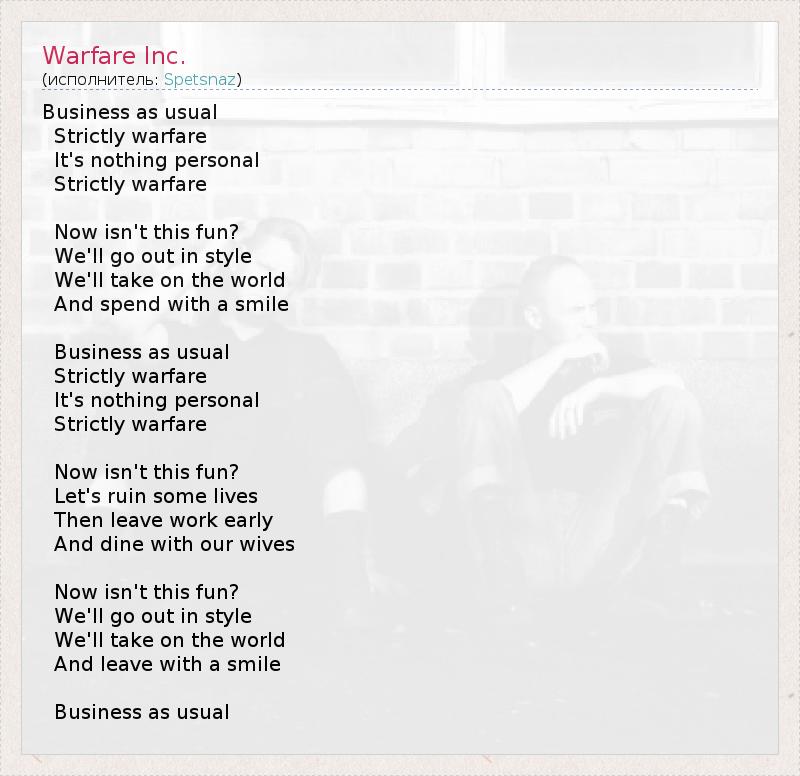 А как ты думаешь, о чем песня "Warfare Inc." ?