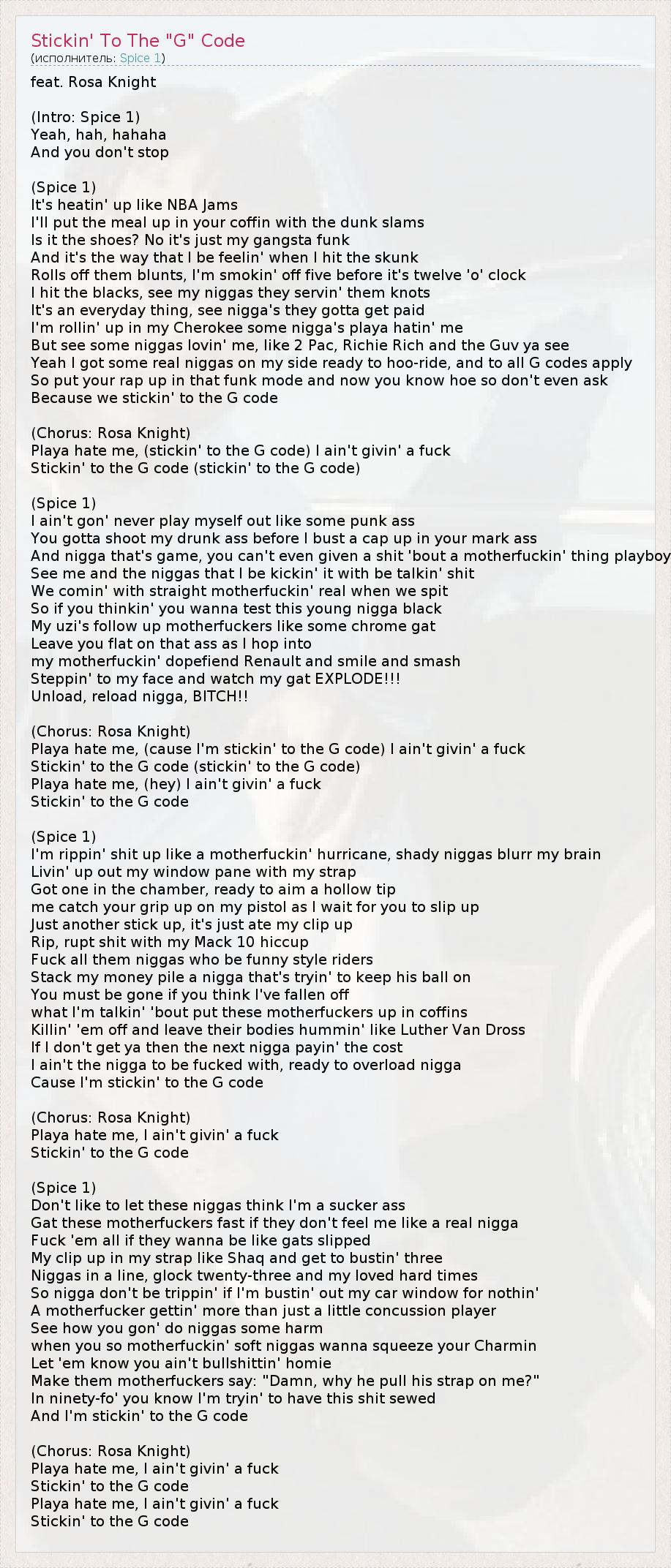 А как ты думаешь, о чем песня "Stickin' To The "G" Code" ?