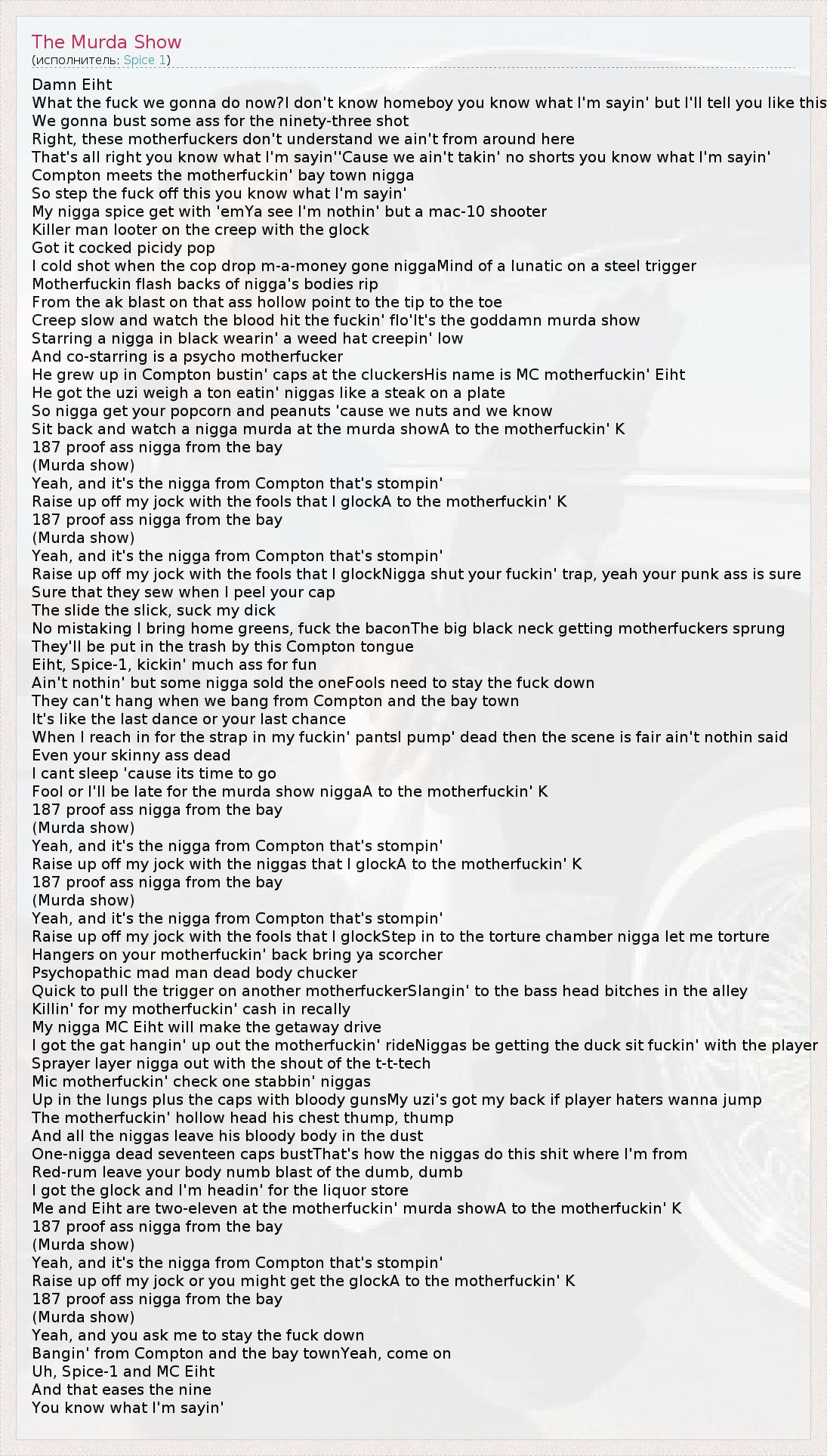 А как ты думаешь, о чем песня "The Murda Show" ?