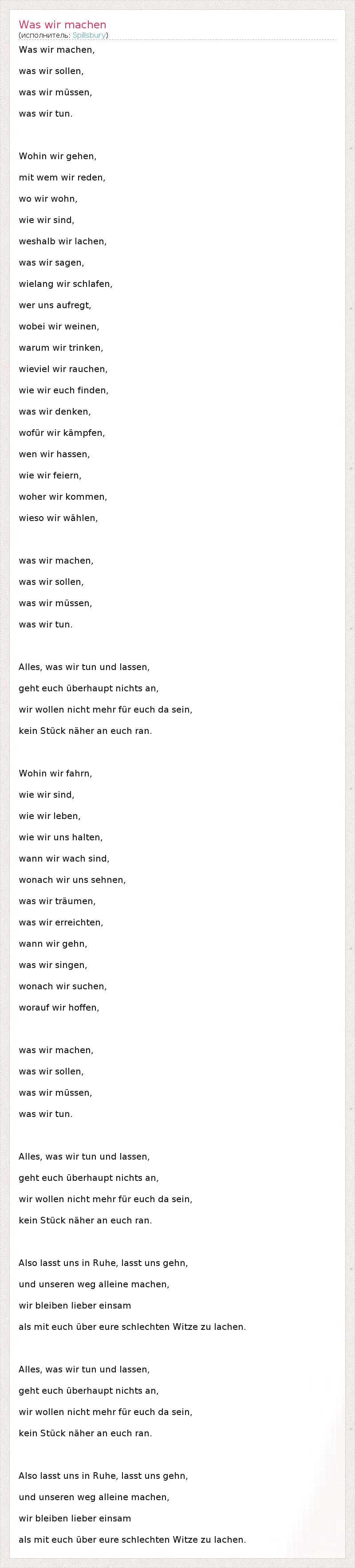А как ты думаешь, о чем песня "Was wir machen" ?