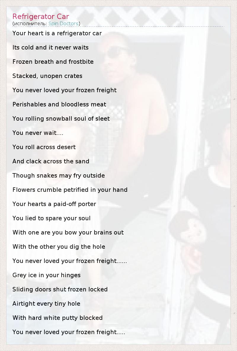 А как ты думаешь, о чем песня "Refrigerator Car" ?