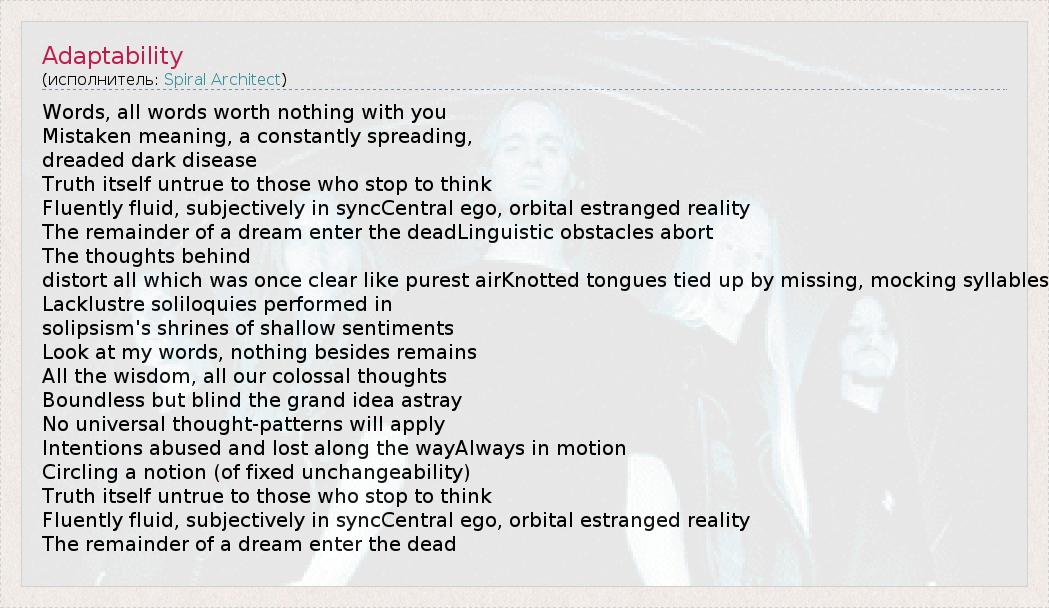 Это интересно:Группа основана в 1993 году в городе Осло, Норвегия). Чем в 80-х — начале 90-х занимались Sieges Even, Psychotic Waltz, Watchtower, Fates Warning? Альбом A Sceptic's Universe — возвращение мятежного духа тех лет — совершенная музыка для самосовершенствования (качество, свойственное лучшим прогрессивным... продолжение