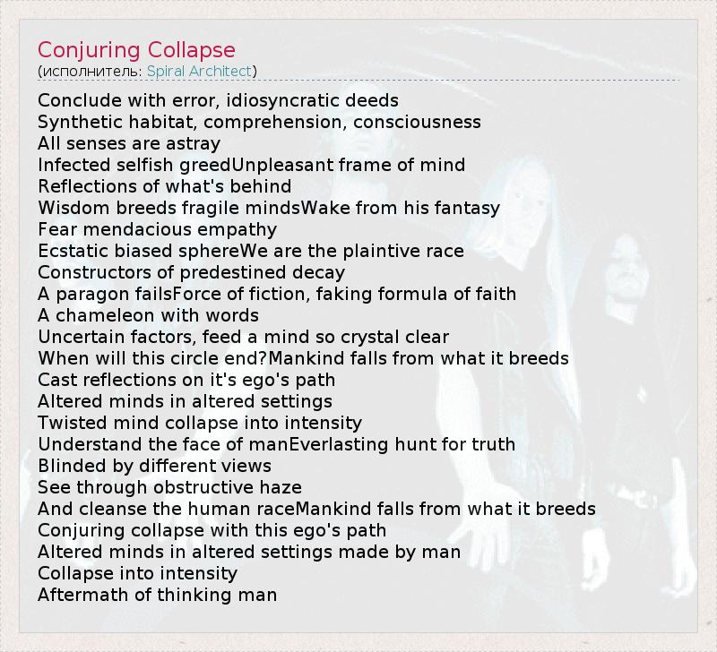 А как ты думаешь, о чем песня "Conjuring Collapse" ?