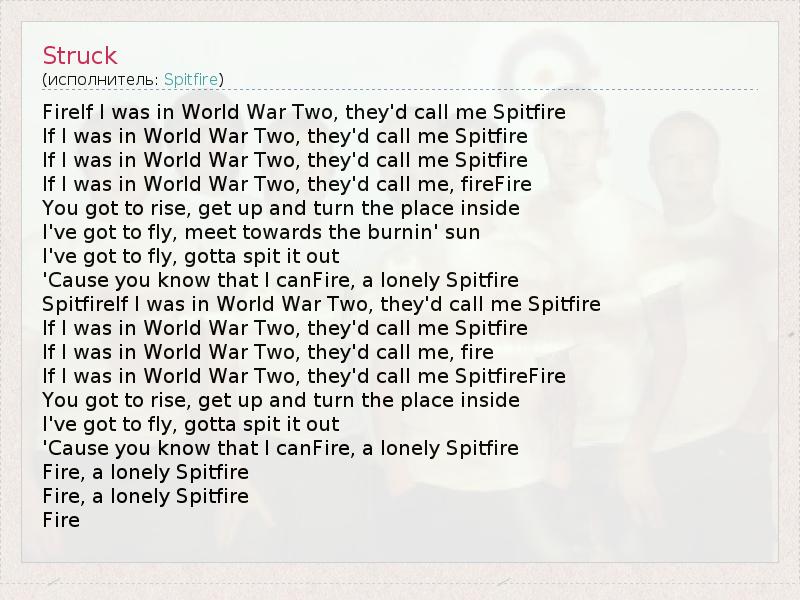 FireIf I was in World War Two, they'd call me Spitfire