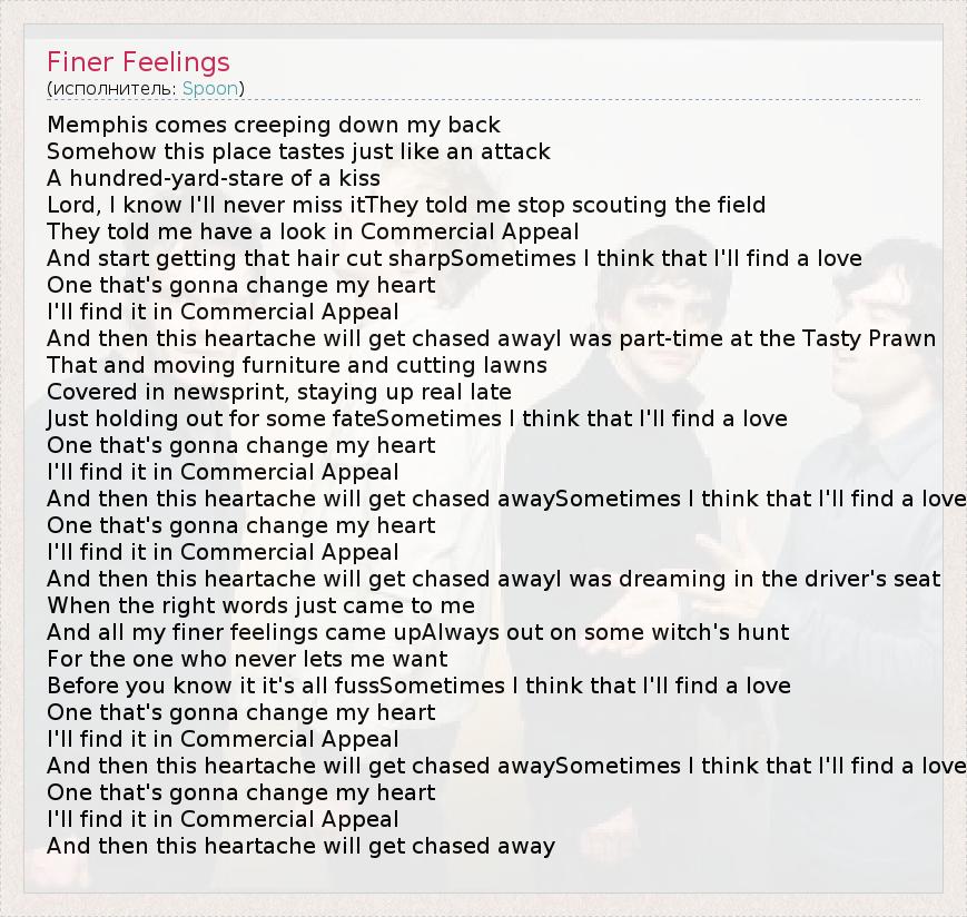 А как ты думаешь, о чем песня "Finer Feelings" ?