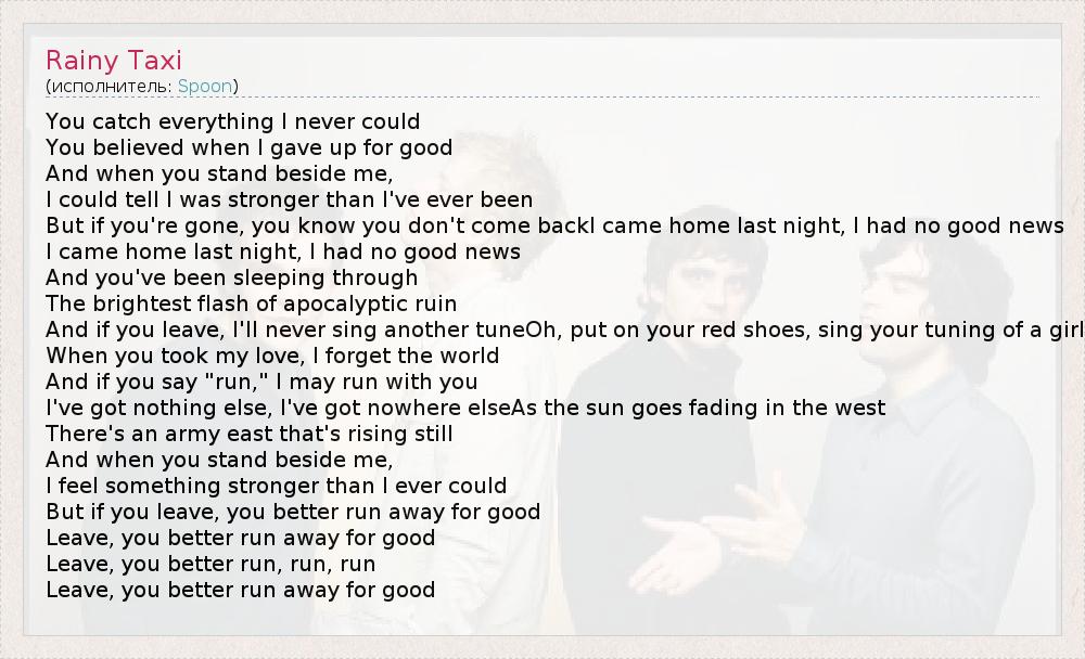А как ты думаешь, о чем песня "Rainy Taxi" ?