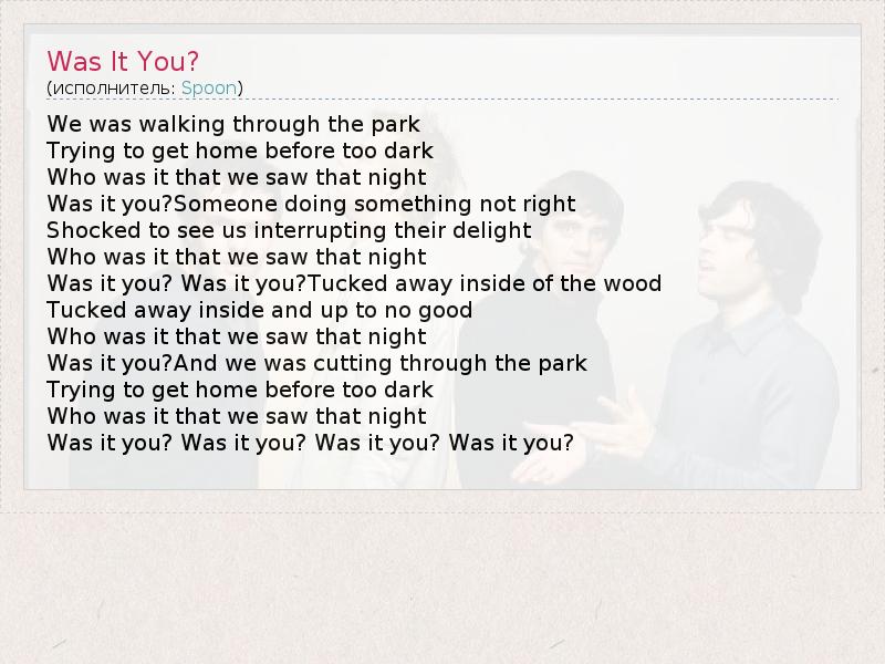 А как ты думаешь, о чем песня "Was It You?" ?