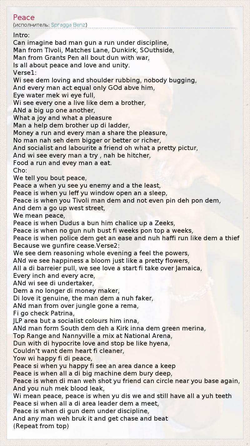 Wi mean peace, peace is when yu dis we and still have all a yuh teeth