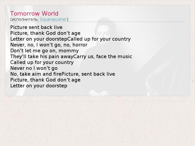А как ты думаешь, о чем песня "Tomorrow World" ?