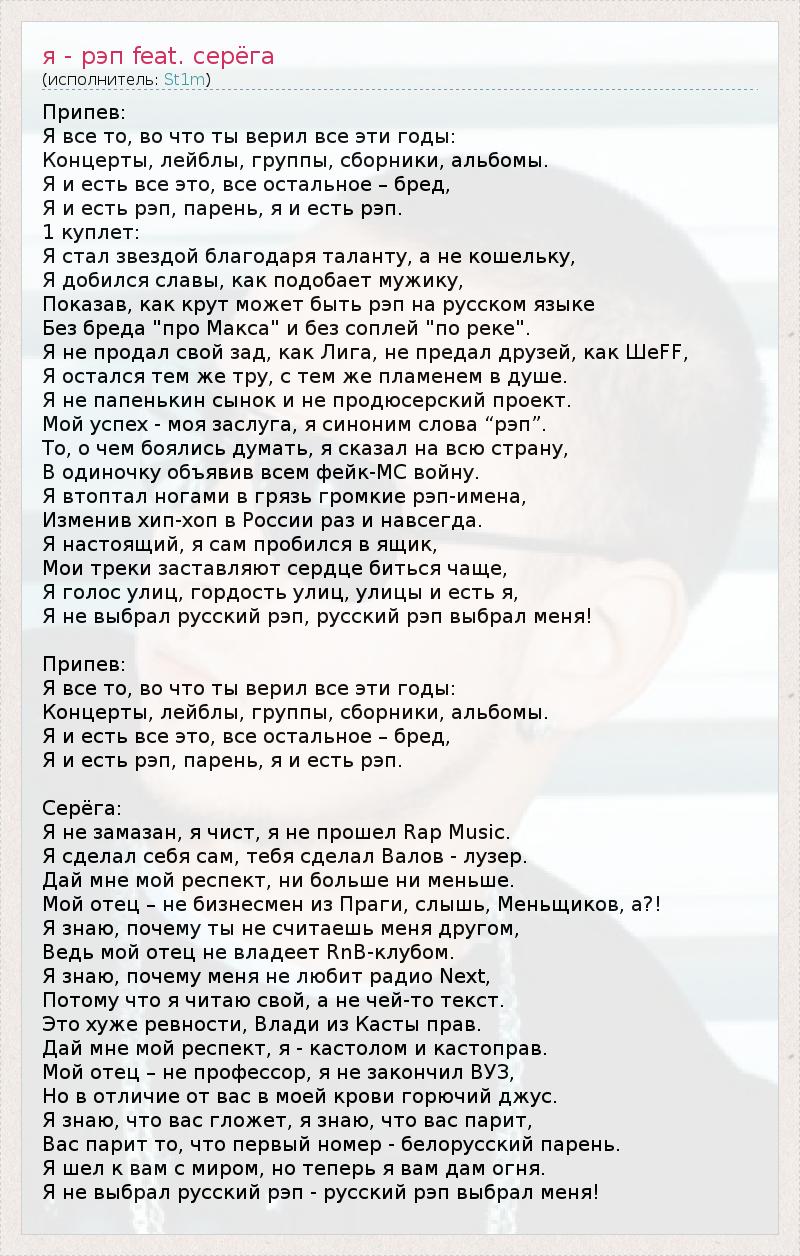 ГлавнаяИсполнителиSt1mя - рэп feat. серёга