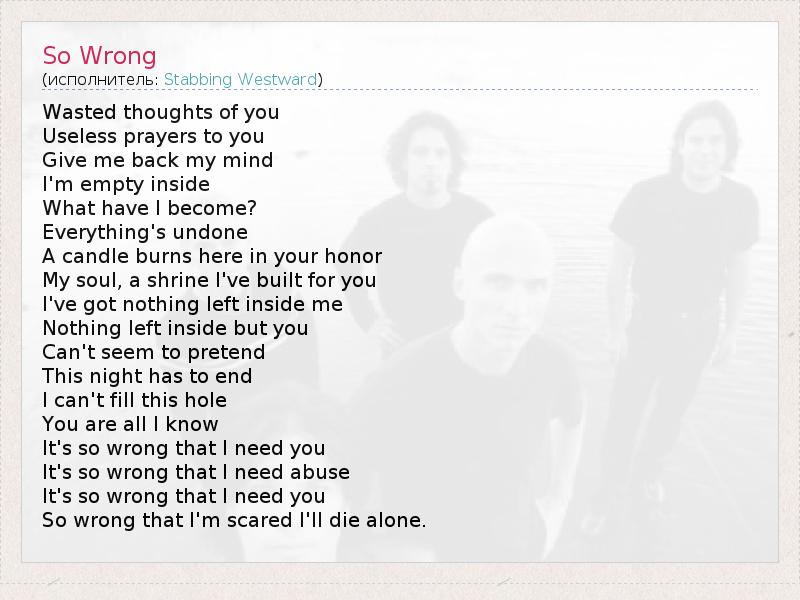 А как ты думаешь, о чем песня "So Wrong" ?
