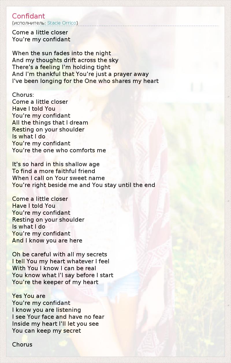 Это интересно:Полное имя: Стэйси Джой Оррико (Stacie Joy Orrico)Дата рождения: 3 марта 1986Этническая принадлежность: итальянкаРодители: отец — Дин, мать — ПэттиБратья, сестры: один старший брат Джэсси, одна старшая сестра Рэйчел, два младших двойнятМесто рождения: СиттлМесто проживания: Нэшвилл, ТеннессиДомашние животные: одна собака, два кота, 11 рыбокХобби: печь, ходить по магазинам,... продолжение
