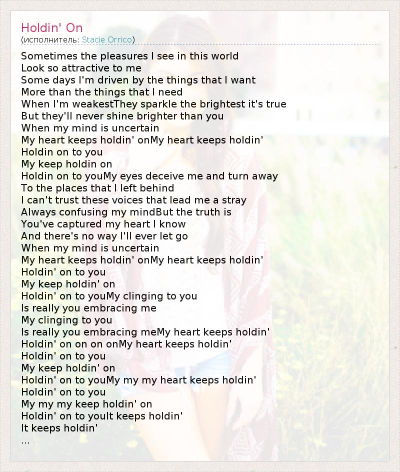 Holdin' on on on onMy heart keeps holdin'