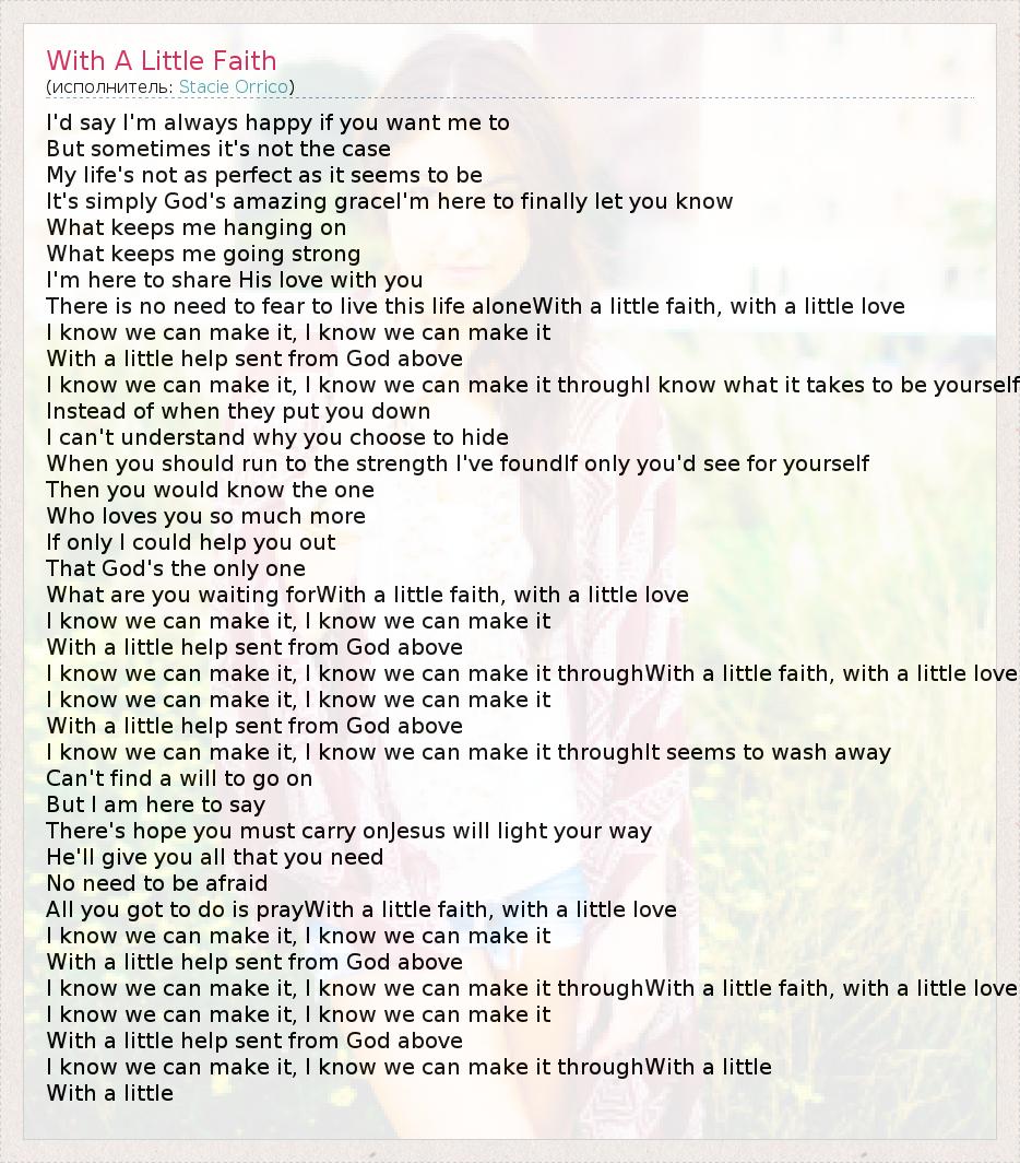 А как ты думаешь, о чем песня "With A Little Faith" ?