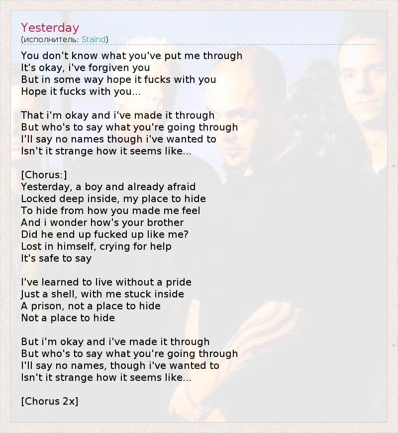 Это интересно:Группа из США. Первый альбом Tormented группа записала самостоятельно в 1996 году. Он не пользовался особой популярностью. Но, начиная с выпуска в апреле 1999 года их первого на официальном лейбле FlipElektra альбома Dysfunction, группа STAIND продемонстрировала замечательную, почти классическую схему успеха новых сегодняшних альтернативных проектов. За это время команда раскрутила три главных своих хита... продолжение