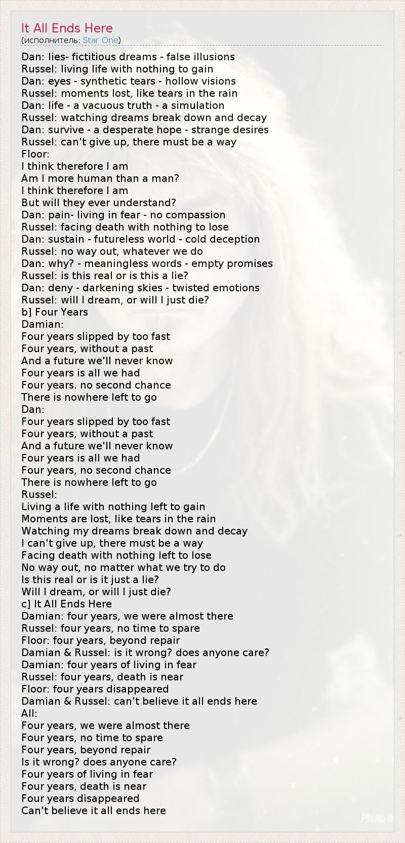 А как ты думаешь, о чем песня "It All Ends Here" ?