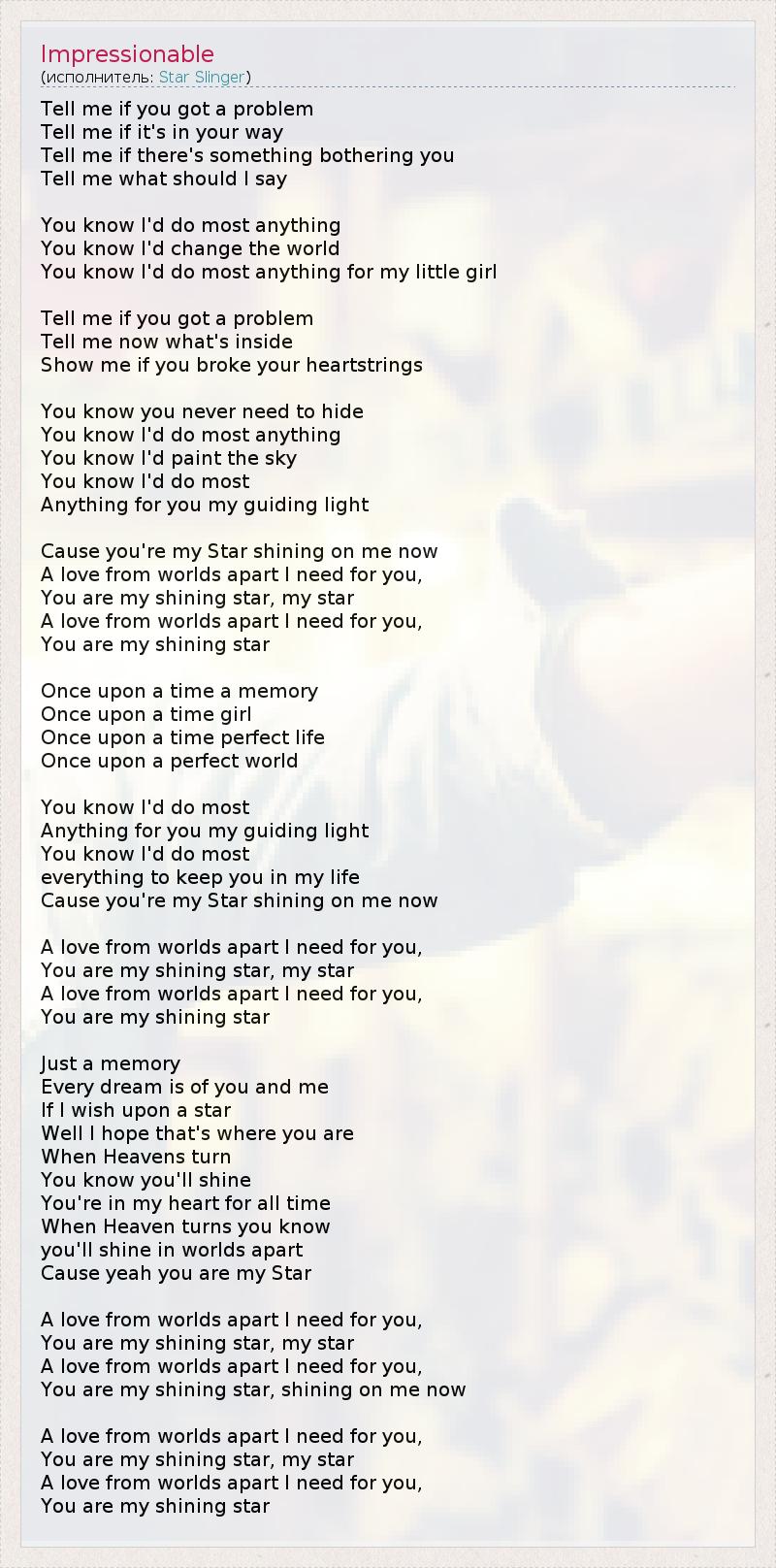 Ты моя сияющая звезда, проливающая на меня своей свет...