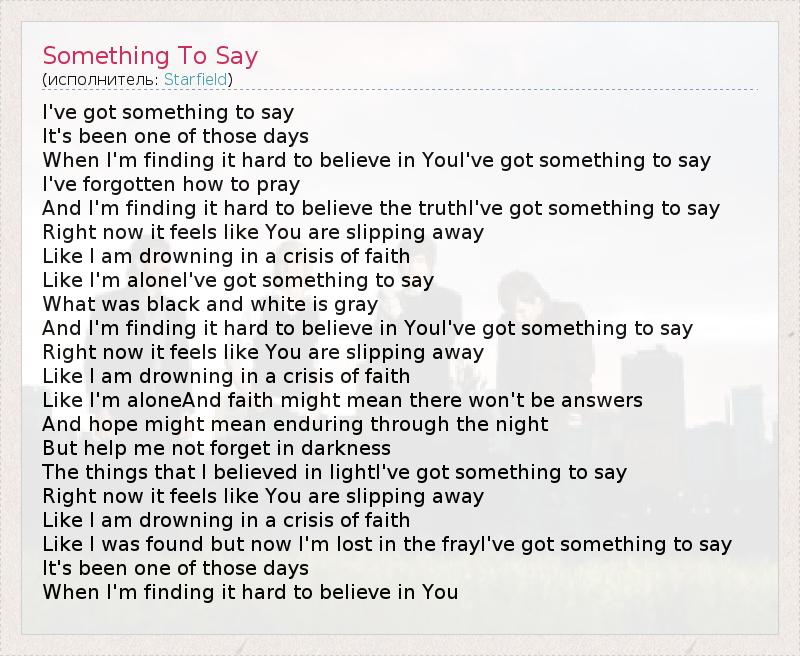 Это интересно:Канадский коллектив Starfield выпустил свой дебютный альбом в мае 2004 года в США на лейбле Sparrow. До того, как подписать контракт со столь весомым лейблом, они успели продать свыше 20.000 копий своего дебютного альбома Tumbling After, записанного в Канаде, получили пять премий Vibe Awards (канадская премия по типу Dove awards) по номинациям: “Лучший исполнитель”, “Группа года”, “Песня года”, “Рок-альбом года”... продолжение