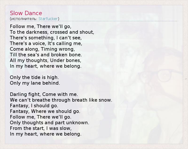 А как ты думаешь, о чем песня "Slow Dance" ?