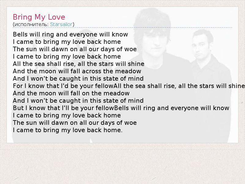 А как ты думаешь, о чем песня "Bring My Love" ?
