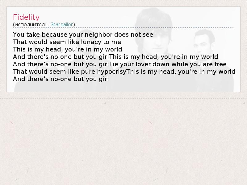 That would seem like pure hypocrisyThis is my head, you're in my world