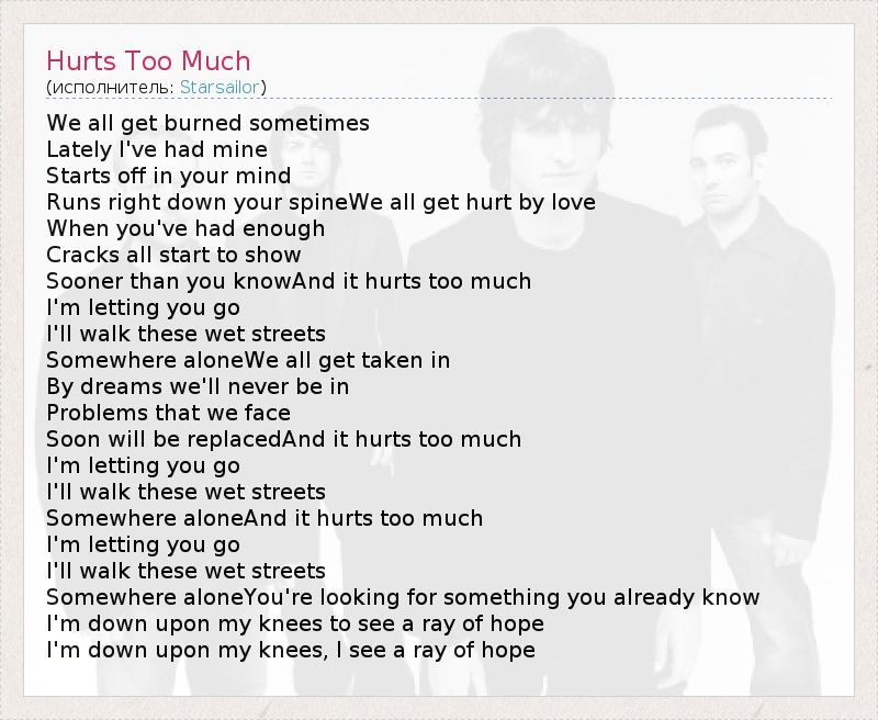 А как ты думаешь, о чем песня "Hurts Too Much" ?