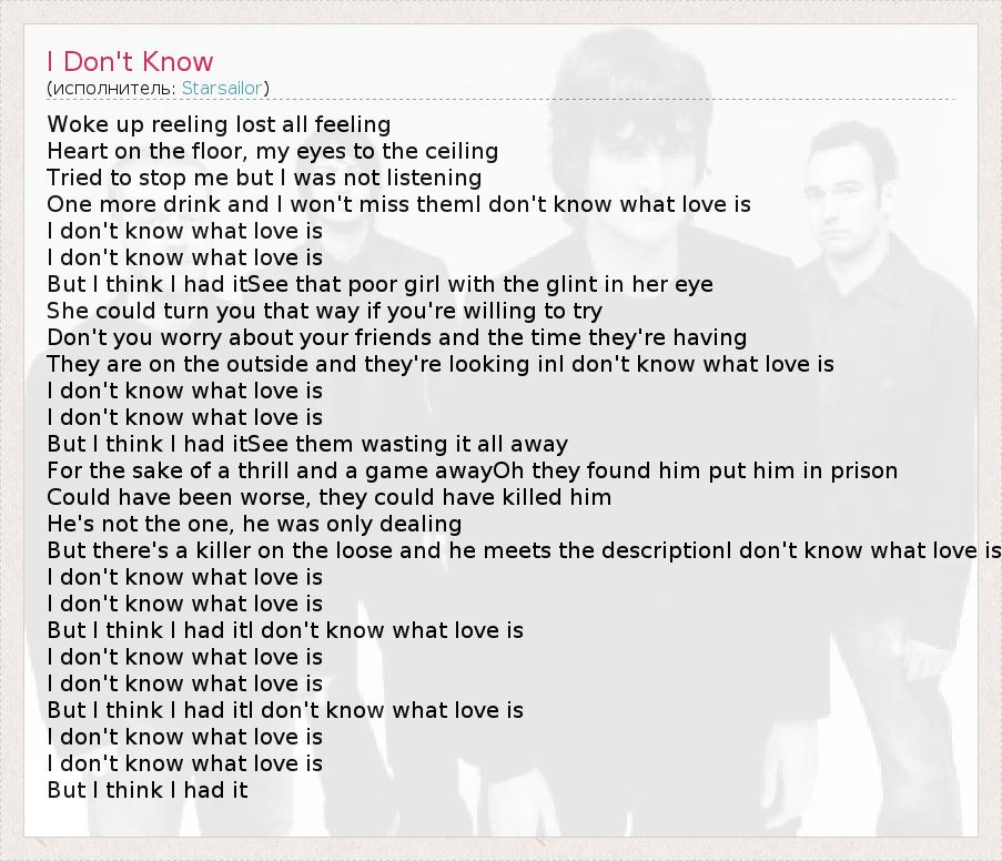 А как ты думаешь, о чем песня "I Don't Know" ?