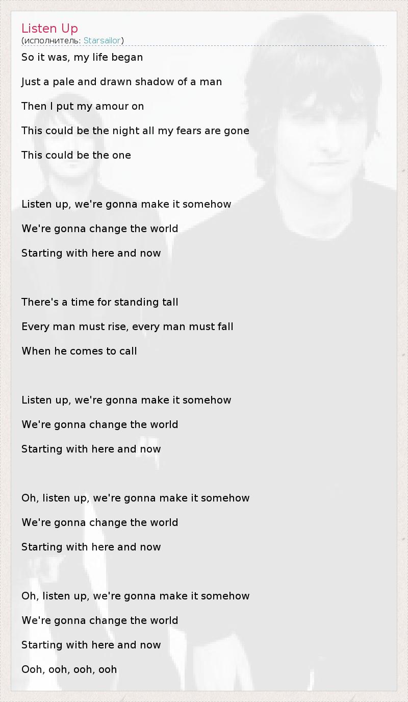 А как ты думаешь, о чем песня "Listen Up" ?