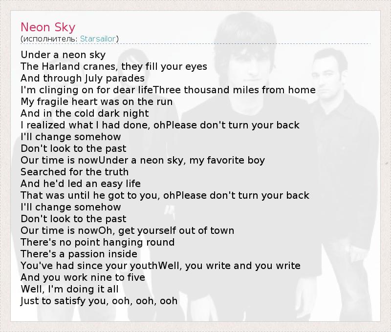 А как ты думаешь, о чем песня "Neon Sky" ?