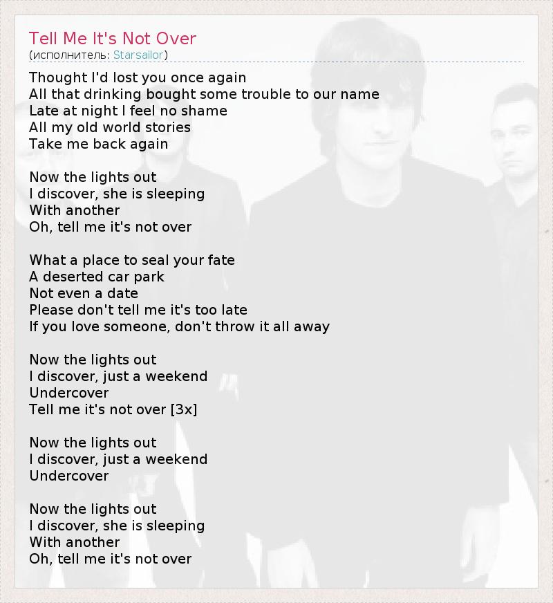 А как ты думаешь, о чем песня "Tell Me It's Not Over" ?