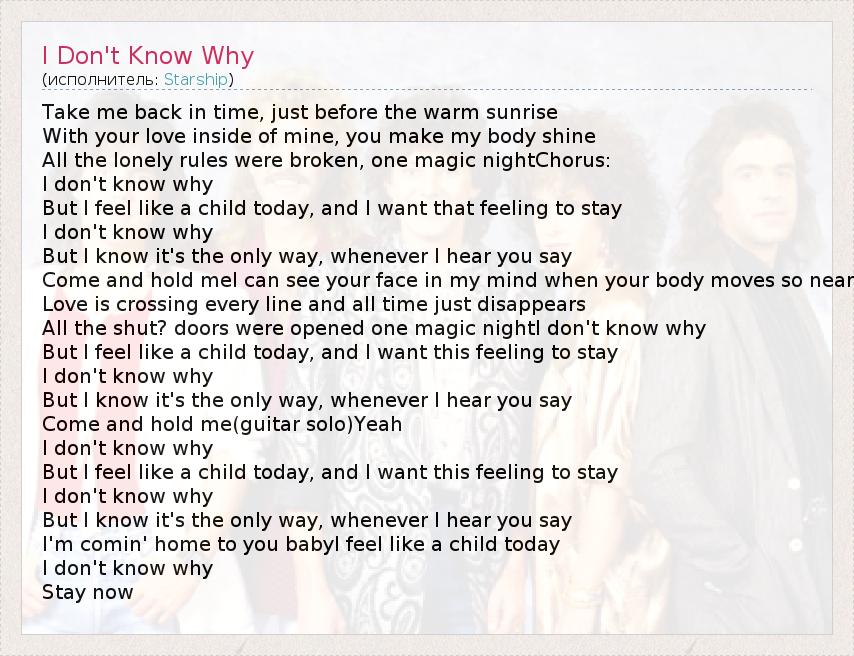 А как ты думаешь, о чем песня "I Don't Know Why" ?