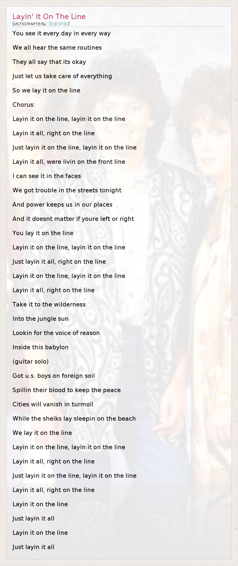 А как ты думаешь, о чем песня "Layin' It On The Line" ?