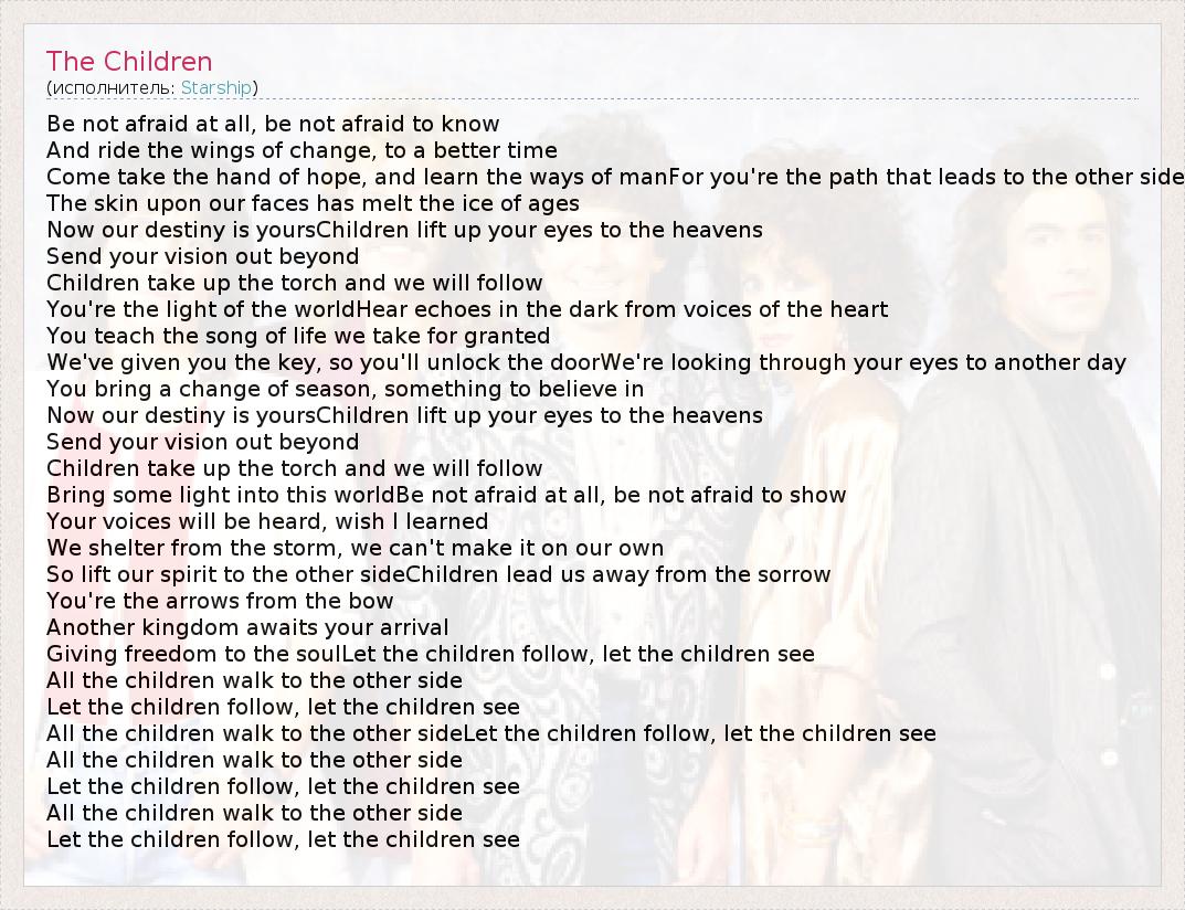 So lift our spirit to the other sideChildren lead us away from the sorrow